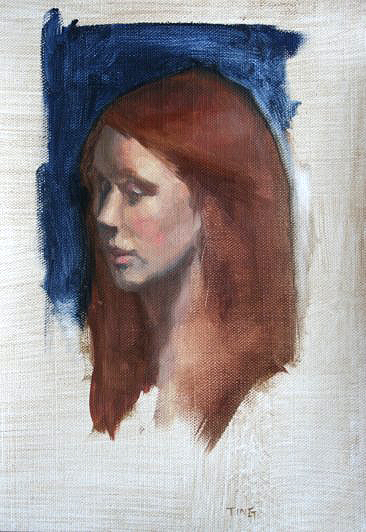 Rounding study of Olivia, 9.5”x6.6” (25x20cm), oil on canvas, 2011