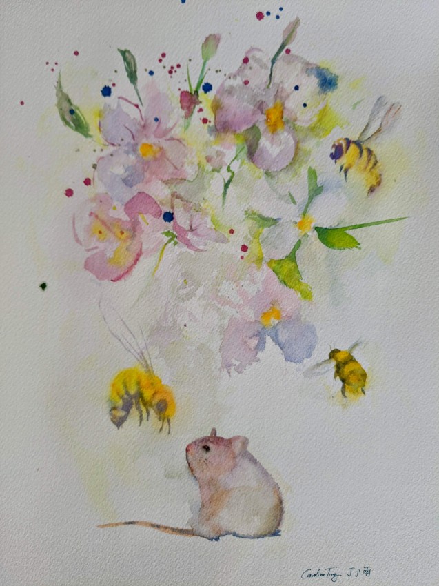 "Sucking nectar" Watercolor, 23cmx31cm, €500